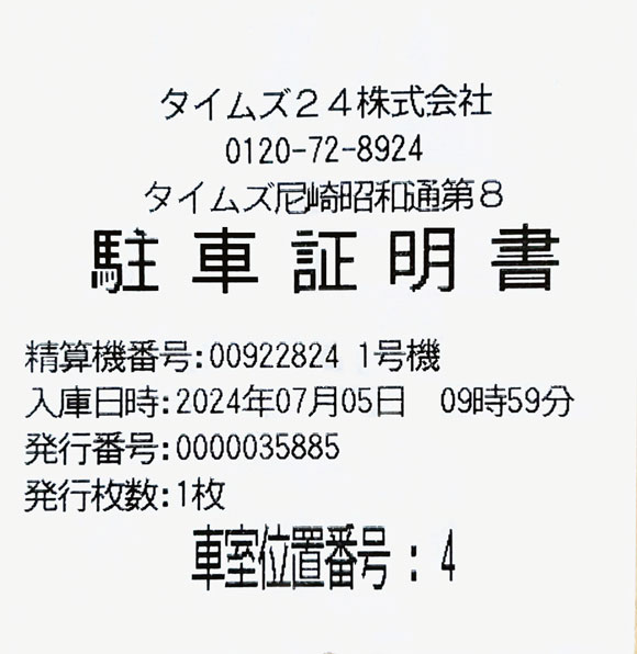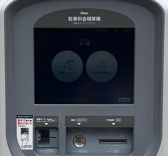 1.パーキング設置の精算機で「駐車証明書発行」の手続きを行う。